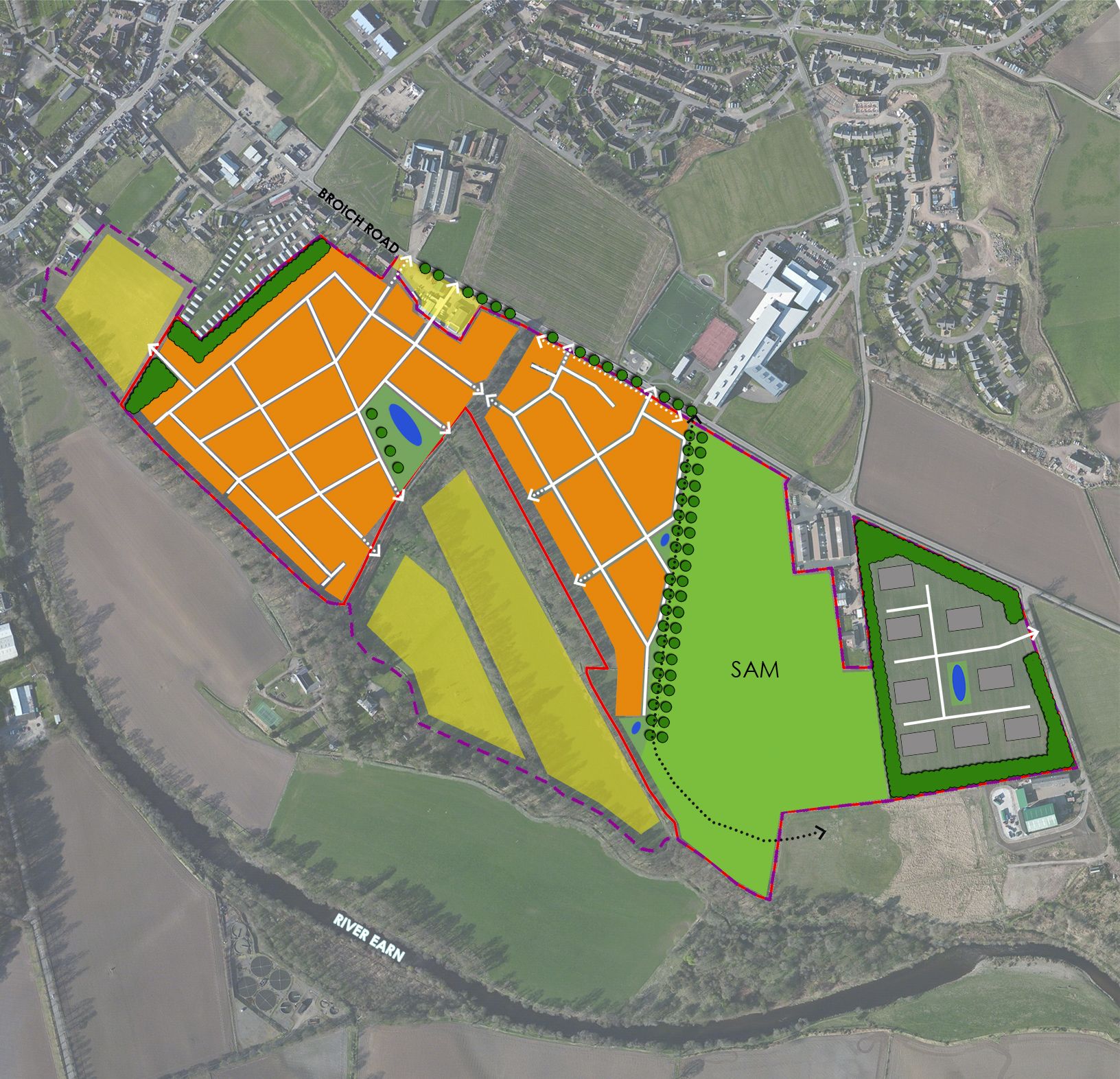We were proud to provide professional ES coordination, EcIA, LVIA, Masterplanning and ecological mitigation & enhancement services in support of the successful planning application of a mixed tenure, 300 unit residential development with associated commercial development at Broich Road, Crieff. The development also included substantial recreational facilities and the integration of an extensive Scheduled Monument.